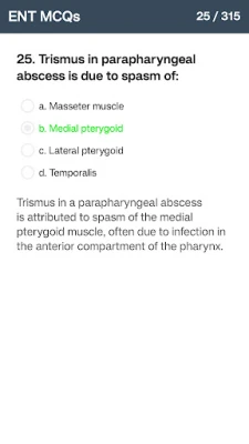 Az ENT MCQ Question Bank egy kivételes forrás a fül-orr-gégészet (ENT) területén való elmélyedéshez és tudásának csiszolásához. Több mint 300 gondosan összeállított feleletválasztós kérdéssel, melyek mindegyikéhez tömör és lényegre törő magyarázat tartozik, ez az alkalmazás alapvető eszközt biztosít a komplex orvosi ismeretek elsajátításához. Akár orvostanhallgató, akár gyakorló szakember, az ENT MCQ Question Bank segít a legfontosabb ENT-koncepciók megértésében és megszilárdításában.