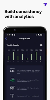 A Higher Goals nem csupán egy nyomon követő eszköz; egy olyan tudatos megközelítést alkalmaz, amely a „Tiny Habits" elveire épül, hangsúlyozva az apró, de következetes lépések erejét. Ezáltal elkerülhető a kiégés és stabilizálhatók az új szokások, melyeket fokozatosan erősíthet. Az alkalmazás intelligens funkciókat kínál, mint a napi, heti és havi ismétlődő szokások kezelése, a sikersorozatok statisztikája, a SMART célok százalékos vizualizációja és a szokások befejezését rögzítő fotók készítése. Élvezze a több eszköz közötti szinkronizálást, az offline működést és a kényelmes sötét módot. A Higher Goals alapfunkciói ingyenesen elérhetők, de egy opcionális Pro tagsággal még több színpalettát, több mint 20 cél és 8 szokás követését, valamint fejlettebb szokásformáló stratégiákat is feloldhat, így még inkább a sajátjává teheti az alkalmazást.
