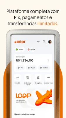 Képzeljen el egy olyan digitális banki megoldást, amely az egész életét leegyszerűsíti, és mindezt egyetlen alkalmazásban kínálja. Az Inter pontosan ezt nyújtja: egy ingyenes, átfogó digitális számlát, amellyel búcsút inthet a díjaknak és a bonyolult pénzügyeknek. Fedezze fel Brazília legteljesebb Super Appjét, ahol minden, amire szüksége van, egy karnyújtásnyira van, biztonságosan és felhasználóbarát módon. Az Inter egy teljes platform, melynek célja, hogy a pénzügyeit akadálymentesen integrálja mindennapjaiba.