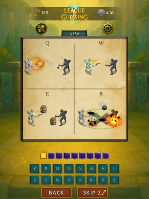 A League of Guessing egy rajongók által készített kvízjáték. Teszteld League of Legends tudásodat! Azonosítsd a LoL bajnokokat kizárólag a képességeik alapján. Egy letisztult, gyors és élvezetes élmény a kit-ismeret rajongóinak.