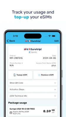 A MobiMatter eSIM App egyszerűsíti a kapcsolattartást a messzi távolban. Hasonlítsa össze és vásárolja meg a legmegfelelőbb eSIM adatcsomagokat egy pillanat alatt, szerződéses kötöttségek nélkül. Miután kiválasztotta az ideális ajánlatot – legyen az napi, heti, havi vagy éves –, azonnal megkapja az aktiváláshoz szükséges QR-kódot e-mailben, így pillanatok alatt online lehet. Ráadásul elsődleges telefonszáma továbbra is aktív és biztonságos marad, így soha nem marad le fontos hívásokról vagy üzenetekről. Figyelemmel kísérheti adatforgalmát, és szükség esetén bármikor feltöltheti egyenlegét közvetlenül az alkalmazásból.