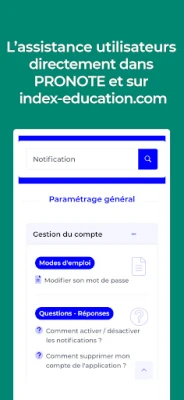 A személyes PRONOTE fiókjához való hozzáférés egyszerű. Az első használatbavételkor javasoljuk, hogy olvassa be az intézményétől kapott QR kódot, vagy ha már rendelkezik Espace Web hozzáféréssel, akkor az ott található kódot használja. Amennyiben bármilyen bejelentkezési nehézsége merülne fel, kérjük, vegye fel a kapcsolatot oktatási intézményével. Az Index Education elkötelezett a felhasználói támogatás iránt: részletes válaszokat találhat kérdéseire tudásbázisunkban, amely tartalmaz használati útmutatókat, videós oktatóanyagokat és gyakran ismételt kérdéseket. Látogassa meg weboldalunkat, a www.index-education.com címen további segítségért, hogy a PRONOTE élménye valóban zökkenőmentes legyen.
